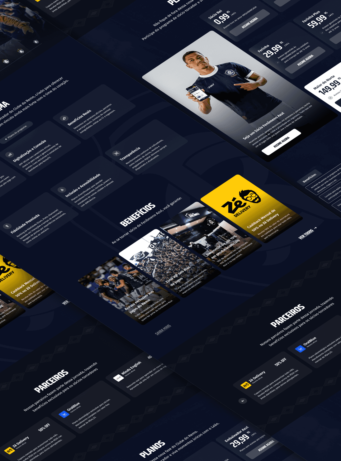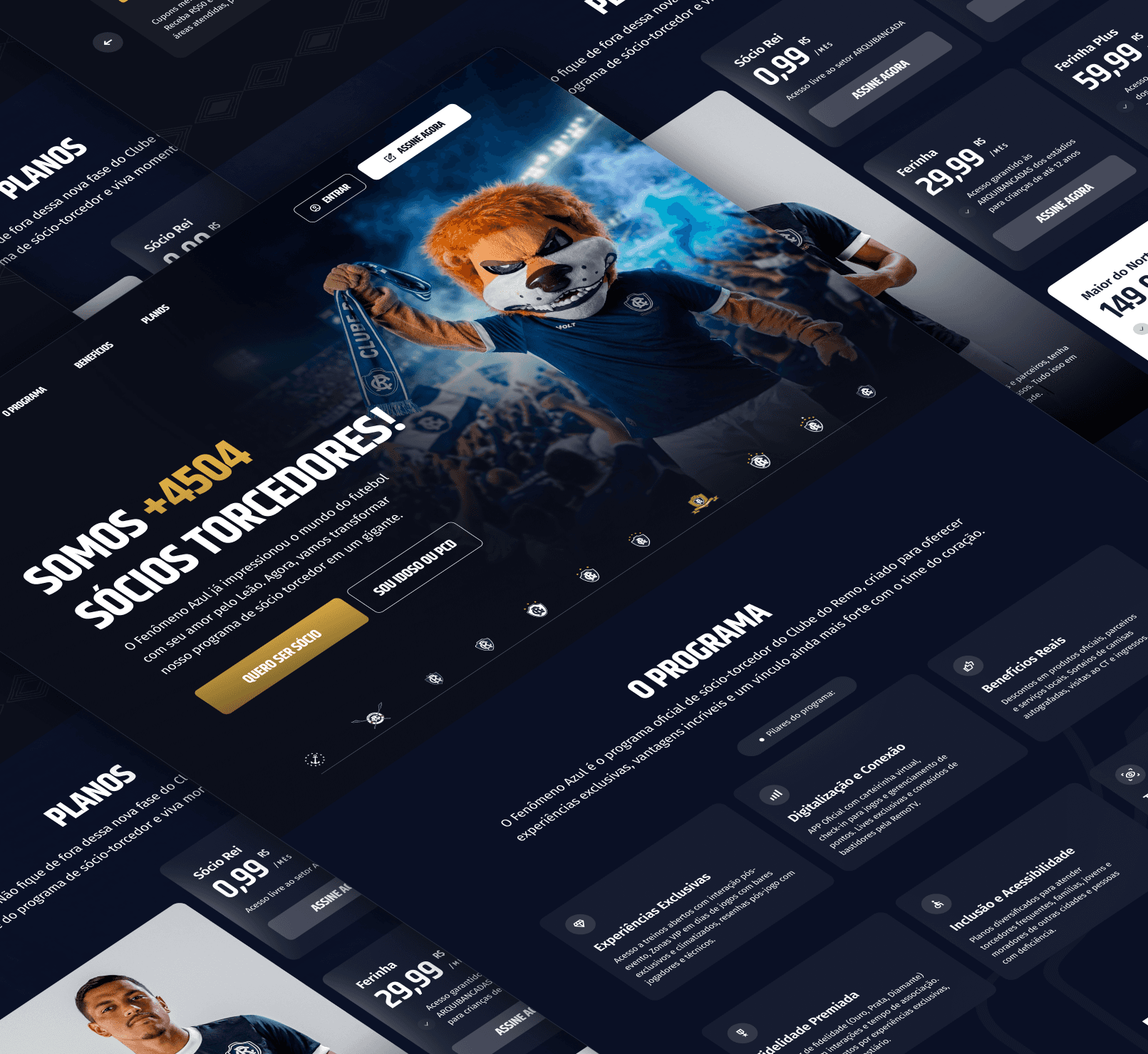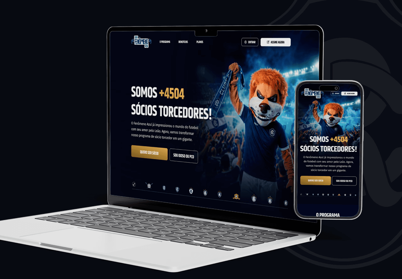 O projeto Sócio Fenômeno Azul foi desenvolvido para o Clube do Remo com o objetivo de criar uma plataforma digital completa de associação, focada em fortalecer o relacionamento com o torcedor e ampliar a base de sócios do clube. A página foi pensada como um hub central de benefícios, apresentando de forma clara os planos, vantagens exclusivas, parceiros, acesso aos jogos com biometria facial e toda a jornada do torcedor dentro do programa. O design adota uma estética institucional, esportiva e moderna, com tons escuros e elementos visuais que reforçam a identidade e a força da marca Remo. A estrutura prioriza clareza, usabilidade e conversão, guiando o usuário desde o primeiro impacto visual até a escolha do plano ideal. O resultado é uma experiência digital sólida, que une tecnologia, paixão pelo clube e estratégia comercial, elevando o padrão de programas de sócio-torcedor no futebol brasileiro.