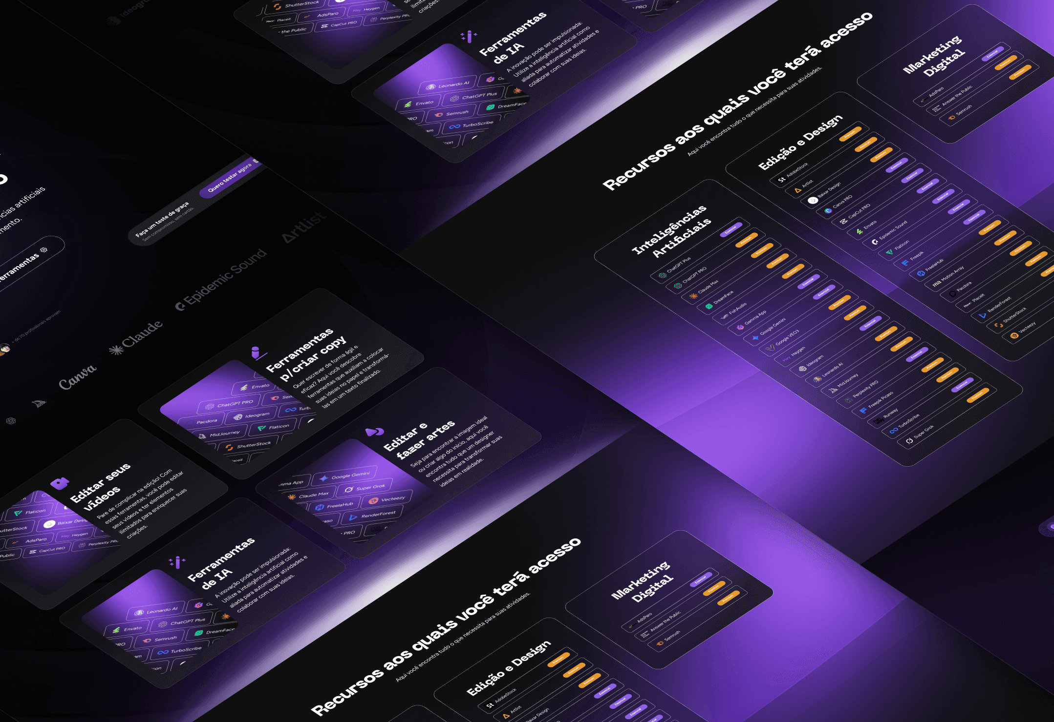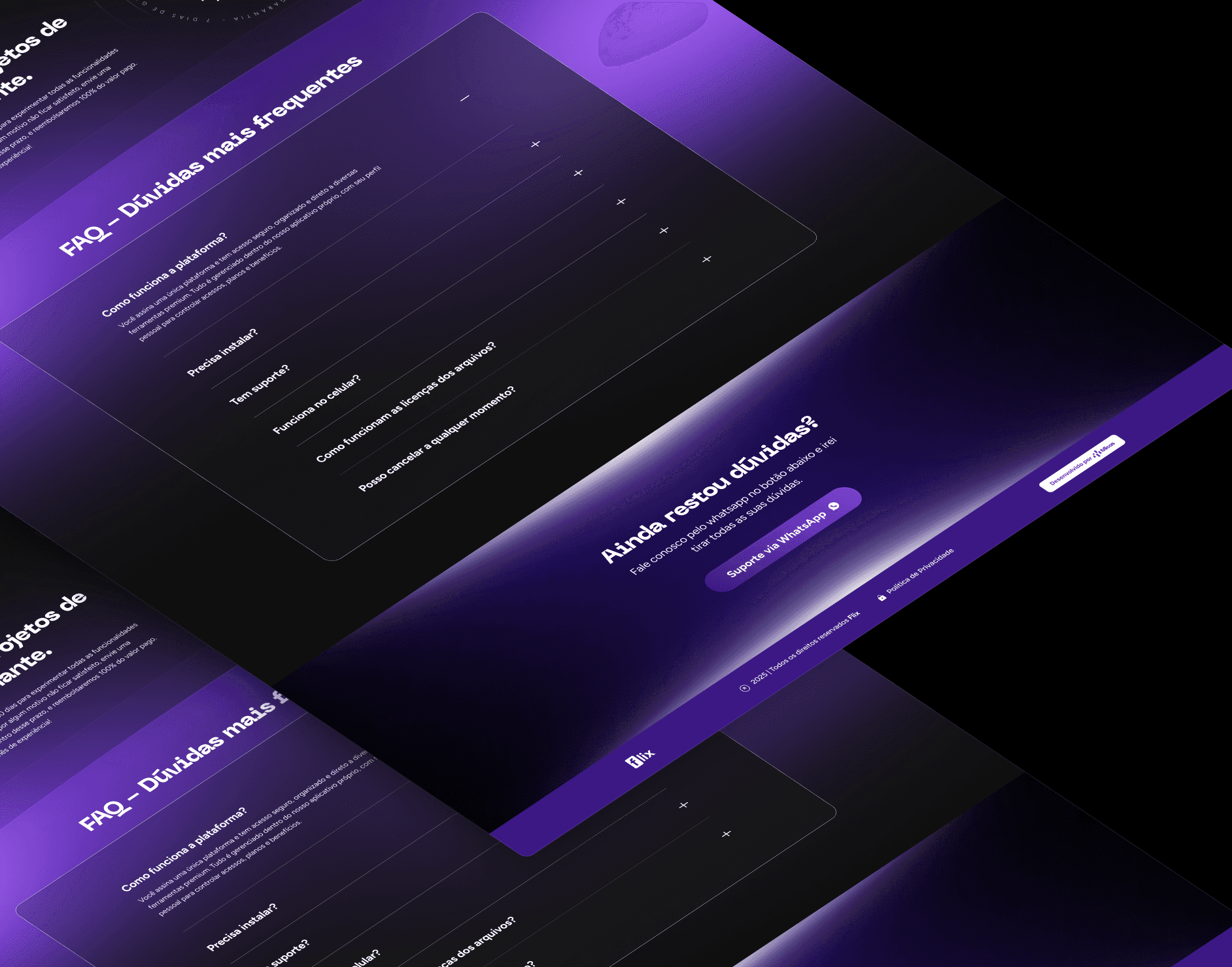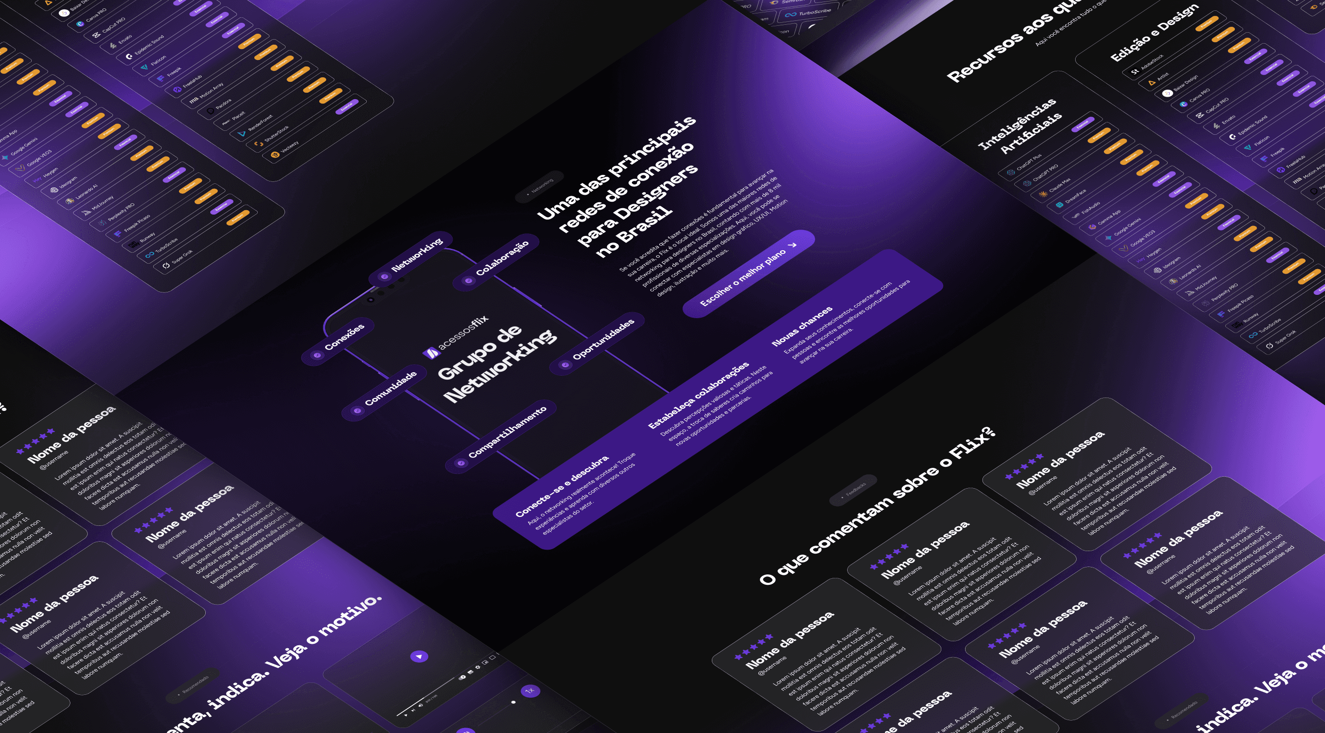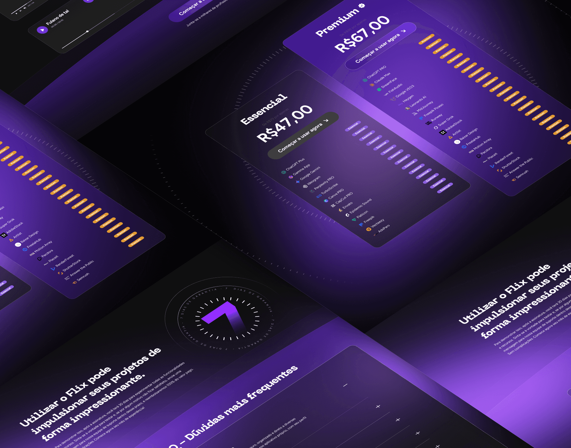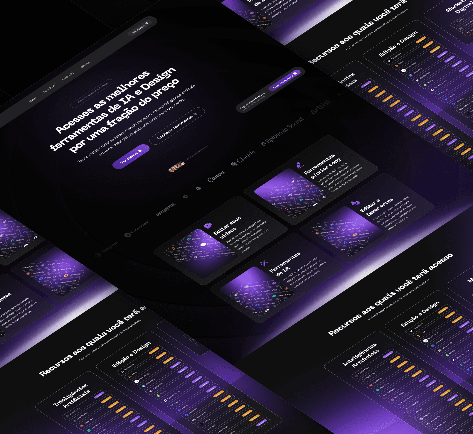 O projeto foi desenvolvido para o site institucional da Flix, com o objetivo de centralizar as melhores ferramentas de inteligência artificial e design em uma única plataforma, tornando o acesso mais simples, econômico e estratégico para criadores, designers e profissionais digitais. A proposta visual aposta em uma estética moderna e funcional, com fundo escuro, tons de roxo e contrastes sutis que remetem à tecnologia, organização e eficiência. O layout em cards, a hierarquia clara de informações e os destaques por categoria facilitam a navegação e reforçam a sensação de controle e praticidade. A estrutura da página foi pensada para comunicar valor rapidamente, apresentando comparativos, recursos disponíveis e benefícios de forma objetiva. A organização por áreas — edição, design, copy e inteligências artificiais — ajuda o usuário a entender o ecossistema da plataforma e visualizar o ganho real de produtividade e economia. O resultado é um site institucional direto e estratégico, que posiciona a Flix como uma solução inteligente para quem deseja acessar ferramentas de ponta sem pagar preços elevados, unindo praticidade, clareza e custo-benefício em uma experiência digital consistente.
