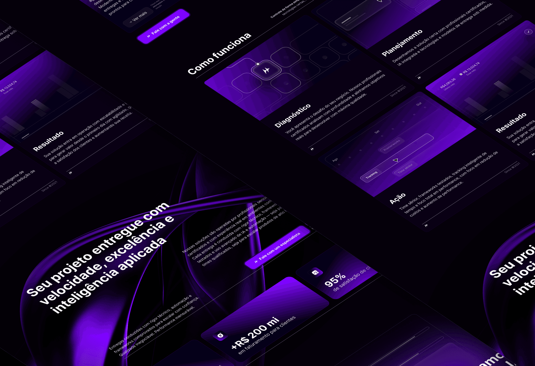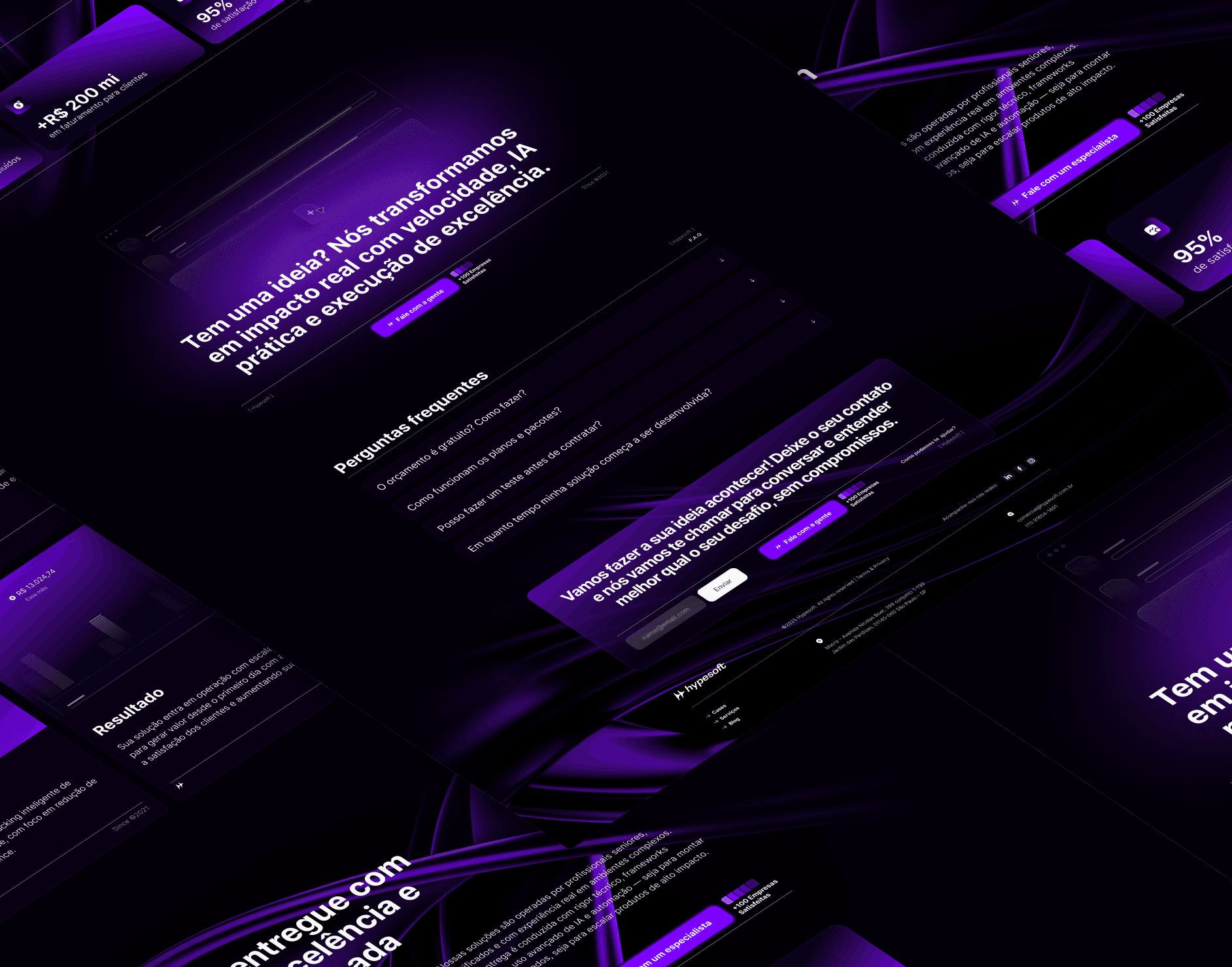O projeto foi desenvolvido para o site institucional da Hypesoft, com o objetivo de posicionar a empresa como uma parceira estratégica capaz de unir tecnologia, inteligência artificial e especialistas de alto nível para acelerar projetos complexos. A proposta visual aposta em uma estética futurista e sofisticada, com predominância de tons escuros e roxos intensos, transmitindo inovação, profundidade técnica e autoridade. As formas fluidas, os contrastes luminosos e a tipografia bem definida reforçam a ideia de movimento contínuo, evolução tecnológica e domínio de soluções avançadas. A estrutura do site foi pensada para apresentar de forma clara e organizada todo o ecossistema da empresa, conectando estratégia, engenharia, dados, IA, infraestrutura e cibersegurança em uma narrativa única. Os cards modulares, a hierarquia visual consistente e os CTAs objetivos criam uma experiência fluida, corporativa e orientada à tomada de decisão. O resultado é um site institucional moderno e robusto, que posiciona a Hypesoft como uma empresa preparada para operar em escala, entregar soluções críticas e atuar como extensão estratégica de times que buscam crescimento, eficiência e controle tecnológico.