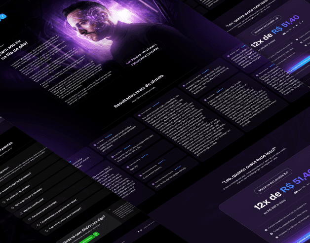 O projeto Mestres do Lovable 3.0 foi desenvolvido para posicionar o curso do Leo Pereira como um caminho estruturado para quem deseja construir sistemas, produtos digitais e SaaS de forma estratégica, mesmo sem ser programador. A proposta visual aposta em uma estética futurista e imersiva, com predominância de roxo, neon e elementos tridimensionais que remetem à tecnologia, inteligência e inovação. Os efeitos luminosos, as interfaces simuladas e o destaque no especialista reforçam autoridade técnica e visão de futuro, comunicando que o aluno está entrando em um novo nível de construção digital. A estrutura da página foi pensada para conduzir o visitante do desejo de criar algo próprio até a clareza de um método aplicável. Blocos organizados, benefícios práticos, provas sociais e oferta bem posicionada constroem uma jornada lógica, mostrando que não se trata apenas de aprender ferramenta, mas de dominar raciocínio estratégico e execução validada. O resultado é uma landing page forte e bem estruturada, que posiciona o Mestres do Lovable 3.0 como um treinamento completo para sair do zero, estruturar sistemas reais e transformar conhecimento em ativos digitais escaláveis.