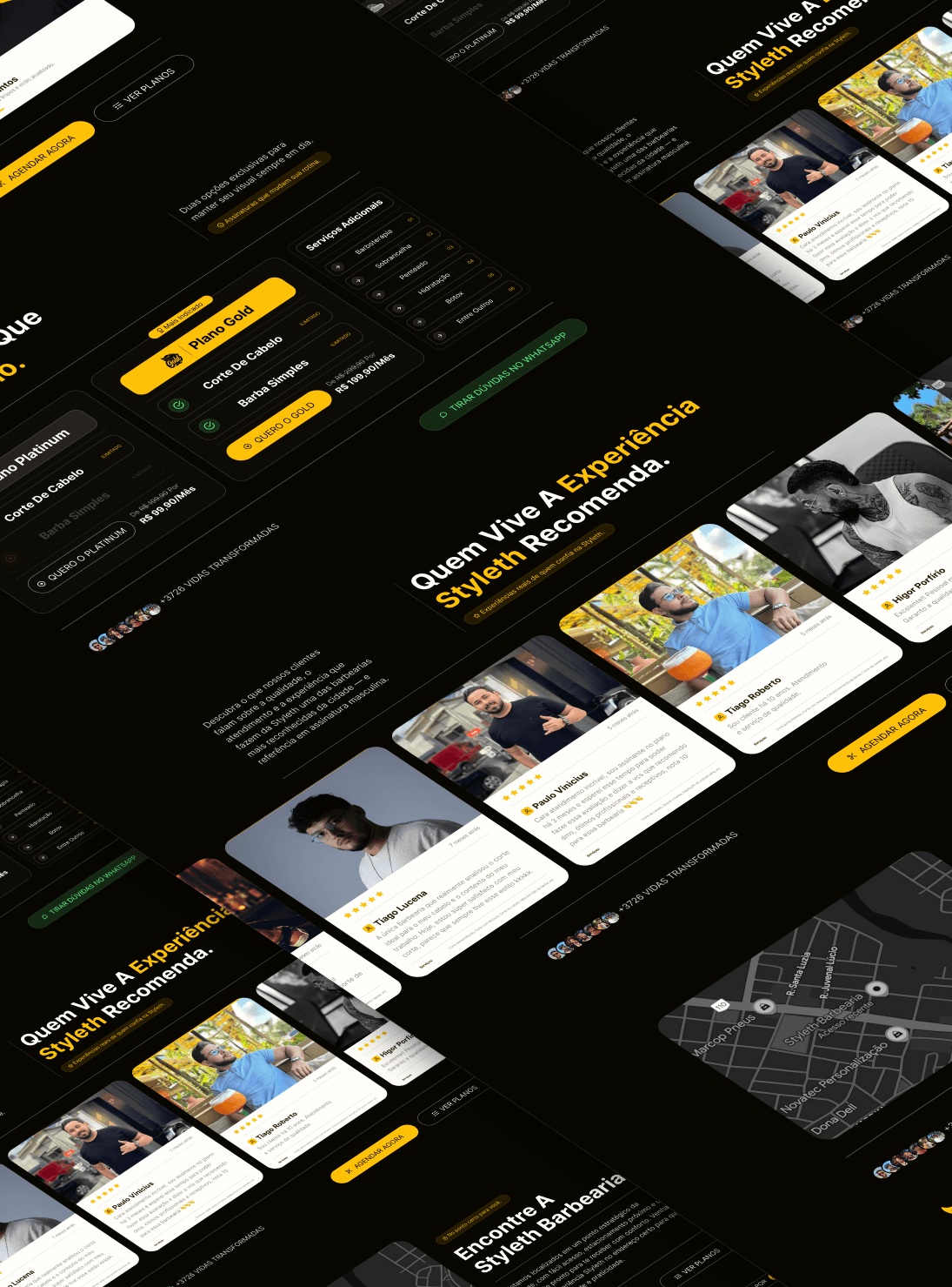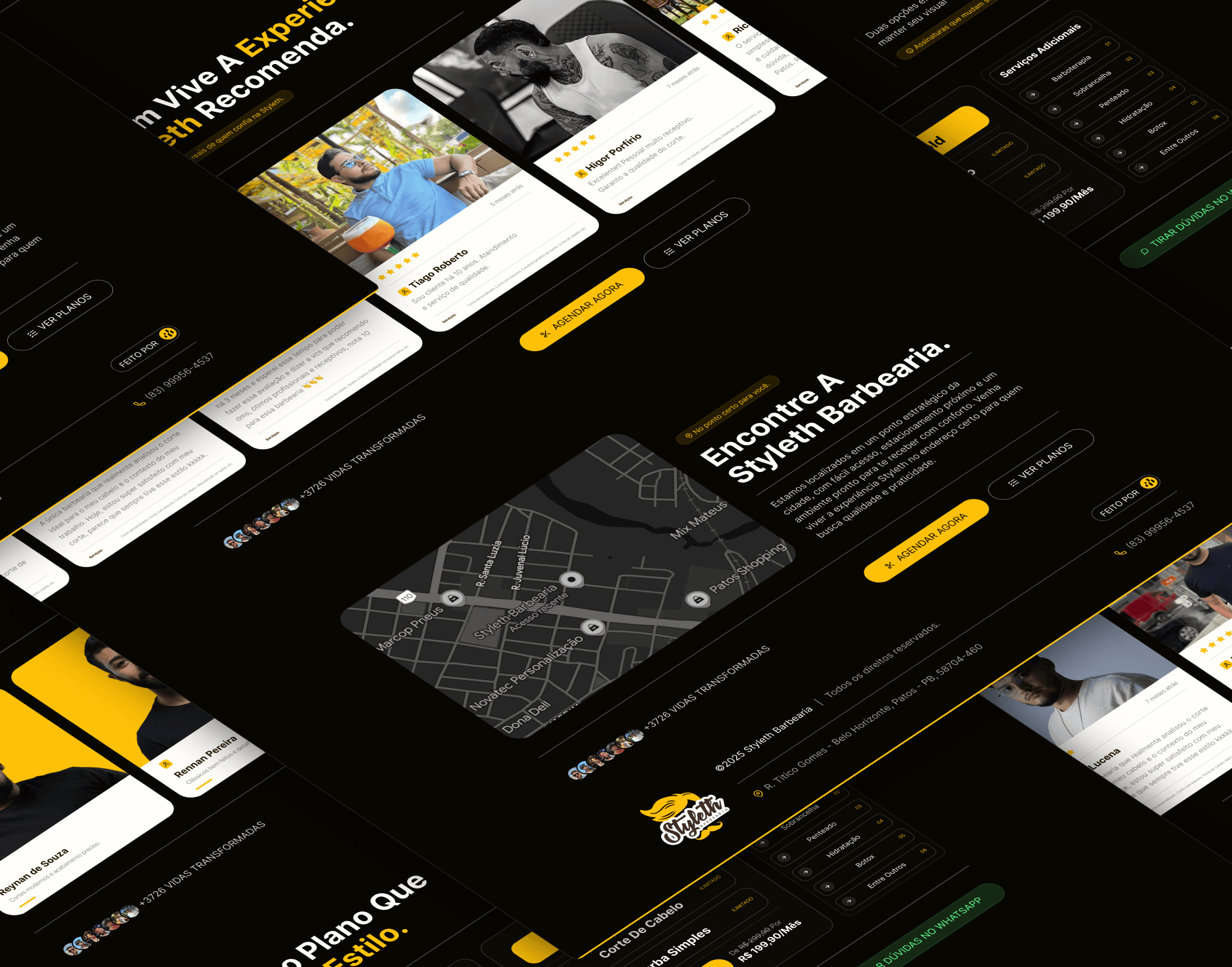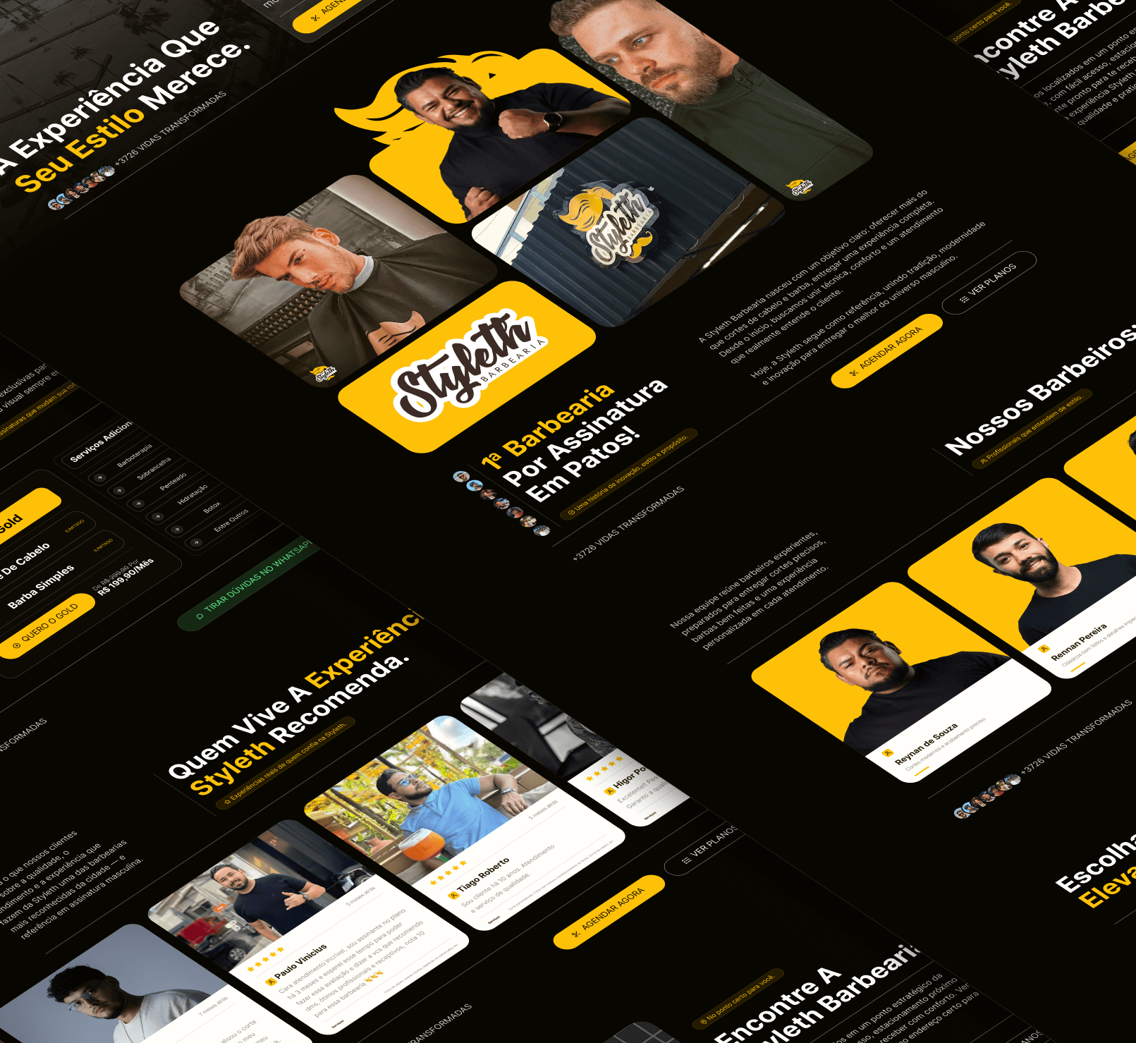 O projeto foi desenvolvido para a Barbearia Styleth, idealizada por Reynan de Souza, com o objetivo de criar uma presença digital que traduzisse o conceito de experiência, exclusividade e recorrência por meio de um modelo de barbearia por assinatura. A direção de arte aposta em uma estética sofisticada e contemporânea, com fundo escuro, contrastes em amarelo vibrante e elementos bem definidos que reforçam modernidade, energia e identidade forte. O visual equilibra elegância e proximidade, valorizando pessoas reais, o ambiente da barbearia e a sensação de pertencimento à marca. A estrutura da página foi pensada para conduzir o usuário de forma clara, destacando diferenciais, planos, profissionais e provas sociais. O layout prioriza leitura fluida, hierarquia visual bem definida e chamadas diretas à ação, criando uma experiência intuitiva tanto no desktop quanto no mobile. O resultado é um site institucional estratégico, que posiciona a Styleth como uma barbearia moderna, acessível e focada em experiência contínua, transformando o cuidado pessoal em algo recorrente, organizado e alinhado ao estilo de vida do cliente.