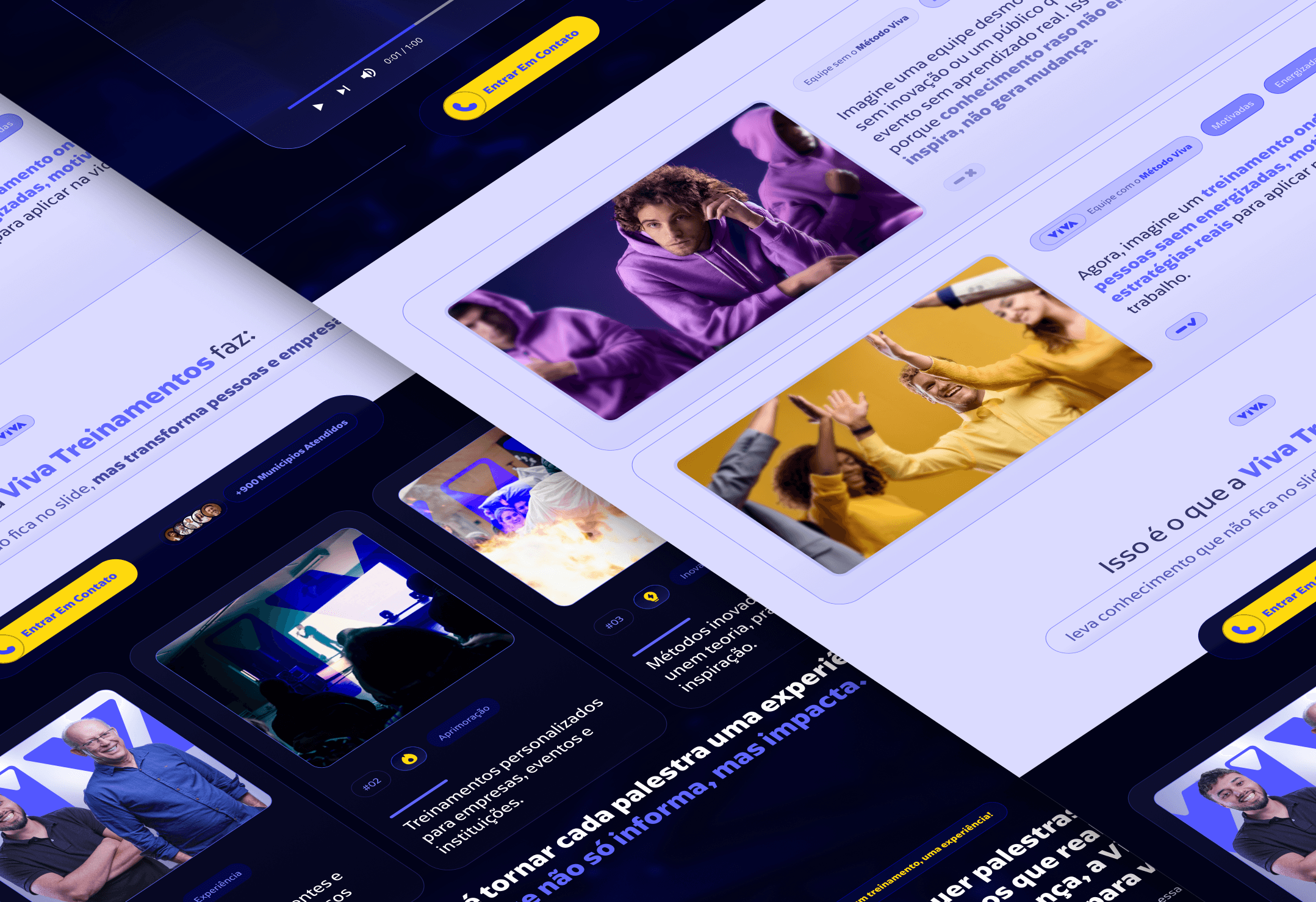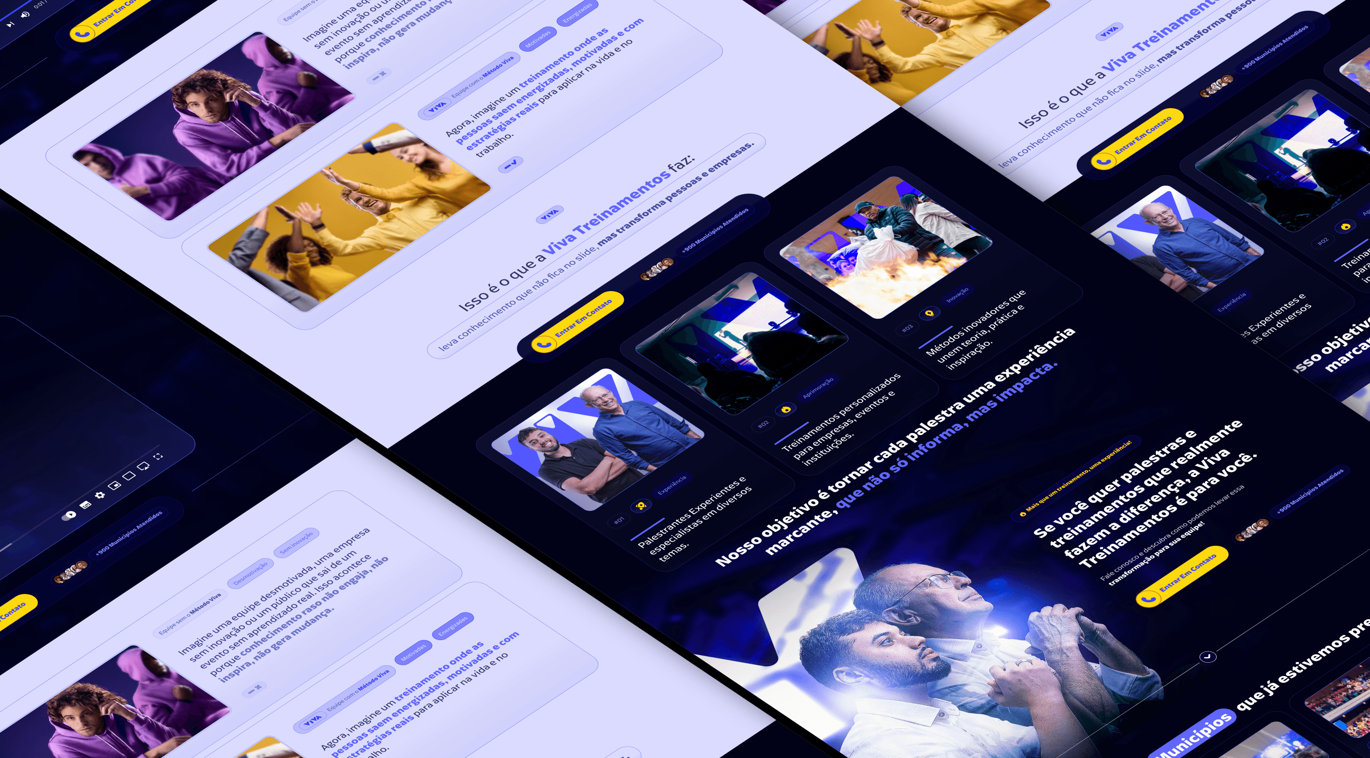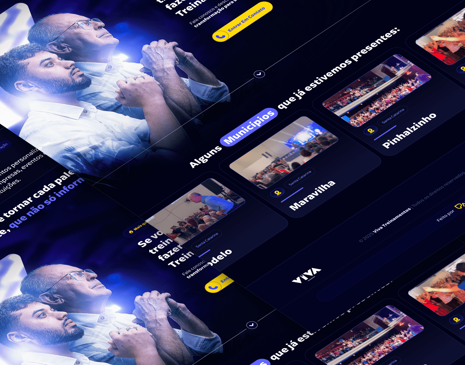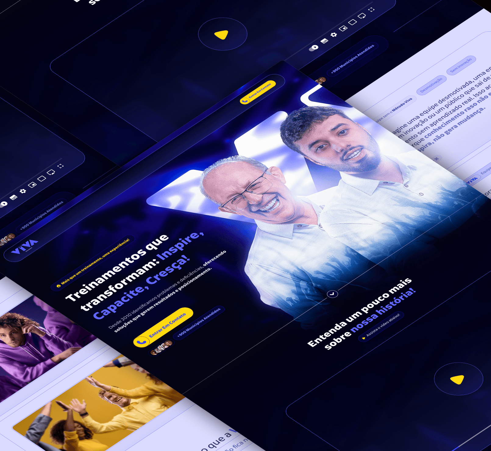 O projeto foi desenvolvido para o site institucional da Viva Treinamentos, com o objetivo de comunicar autoridade, experiência e impacto real por meio de treinamentos voltados ao desenvolvimento de pessoas, equipes e organizações. A proposta visual aposta em uma estética moderna e confiável, com tons de azul e roxo que transmitem credibilidade, evolução e clareza. A presença humana em destaque reforça proximidade, empatia e conexão emocional, elementos essenciais para uma marca que atua diretamente com transformação comportamental e desenvolvimento profissional. A estrutura da página foi pensada para contar uma história, apresentando propósito, trajetória e metodologia de forma progressiva. Vídeo institucional, provas sociais e chamadas claras para contato constroem uma jornada que inspira confiança e facilita a tomada de decisão por parte de empresas e gestores. O resultado é um site institucional sólido e envolvente, que posiciona a Viva Treinamentos como uma referência em educação corporativa, preparada para gerar mudanças consistentes por meio de conhecimento aplicado, experiências práticas e foco em resultados.